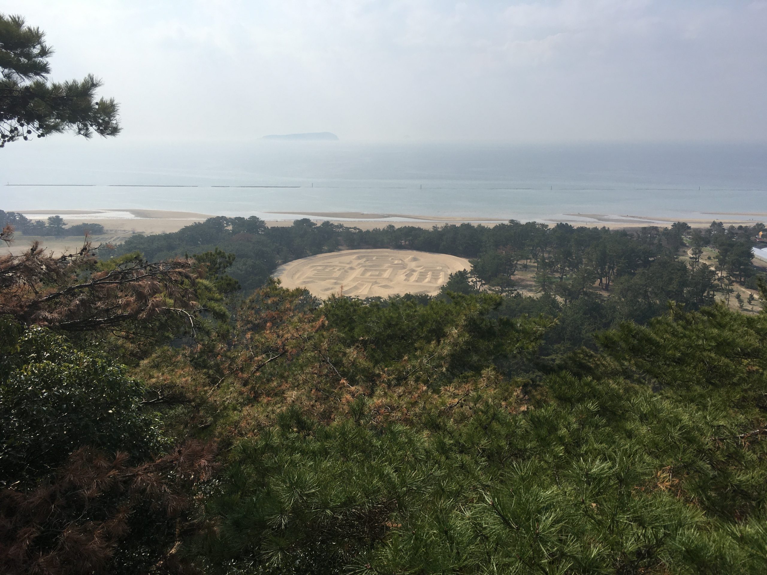 道中見どころがあまりなく、いきなり到着!展望台から見た銭形砂絵です。知っている人は年齢がバレる時代劇「銭形平次」のタイトルバックにも使われています。